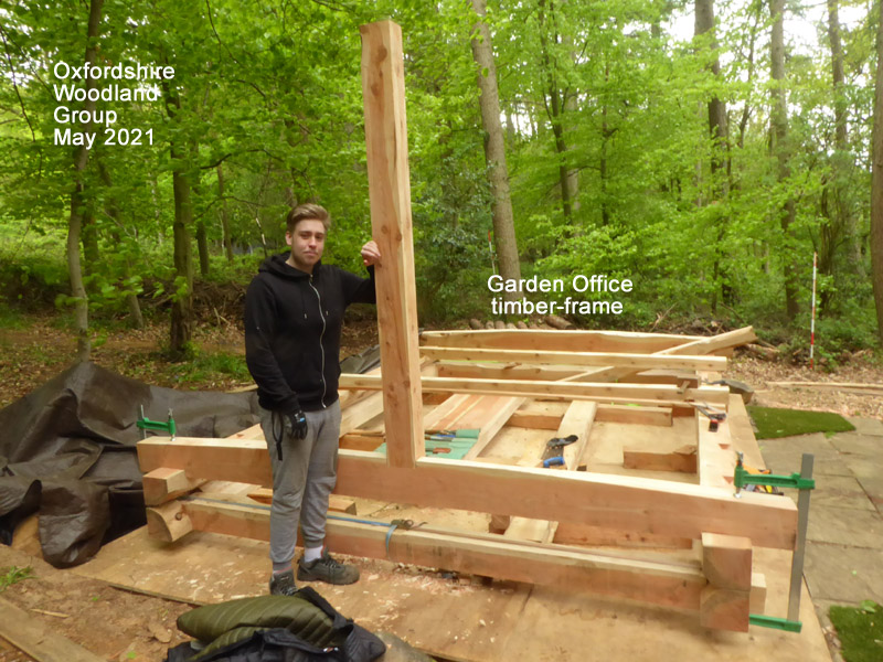 Following on from the felling, extraction and conversion of a large Douglas fir tree work has now commenced to frame the one tree home office sills.